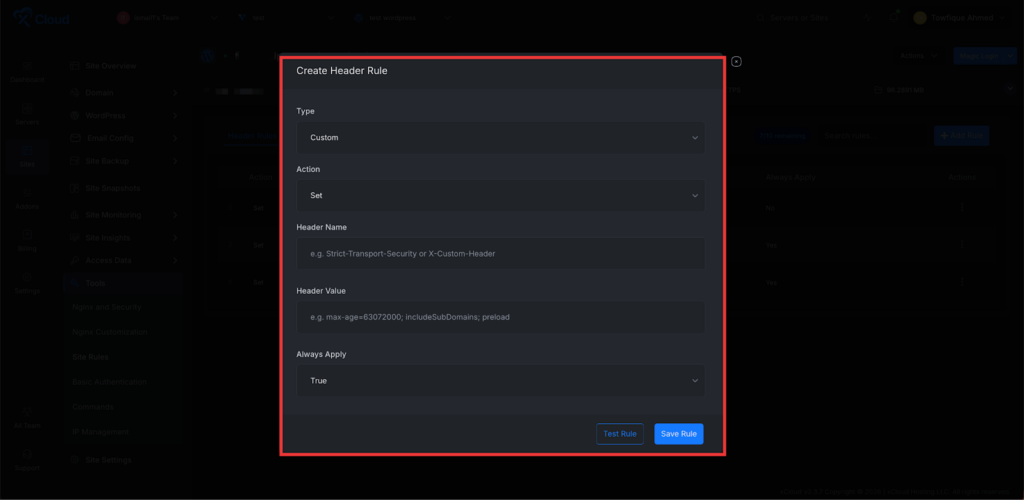 Create and manage HTTP header and redirect rules for WordPress sites running NGINX directly from the xCloud UI – no manual nginx config editing required.