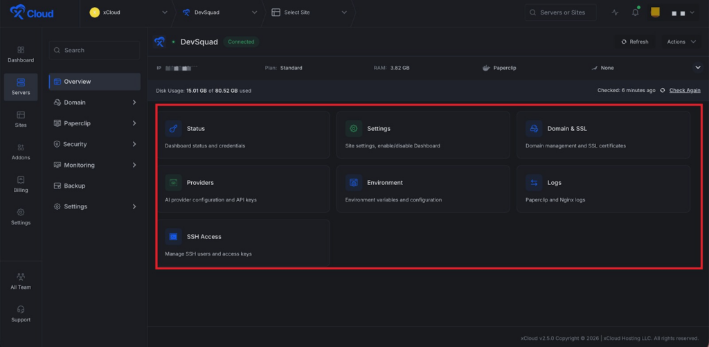 🌟With xCloud, you get a fully managed server with automatic updates, security, logs, SSH, and more – all in one place.