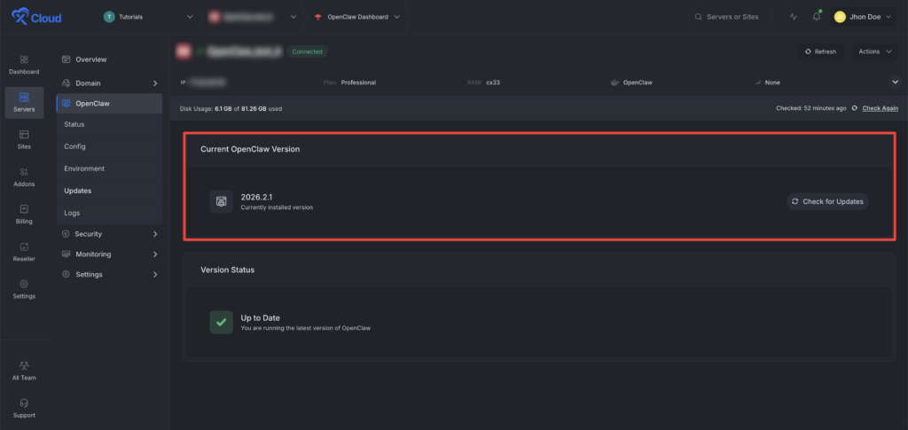 - Control OpenClaw versions, check for the lates updates easily.