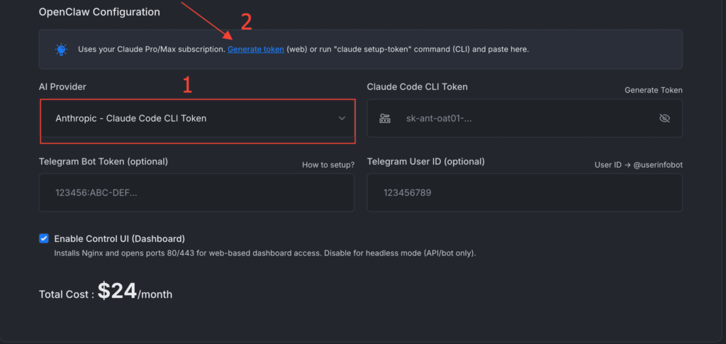 First, select the Claude Code CLI option and then click on Generate Token.
