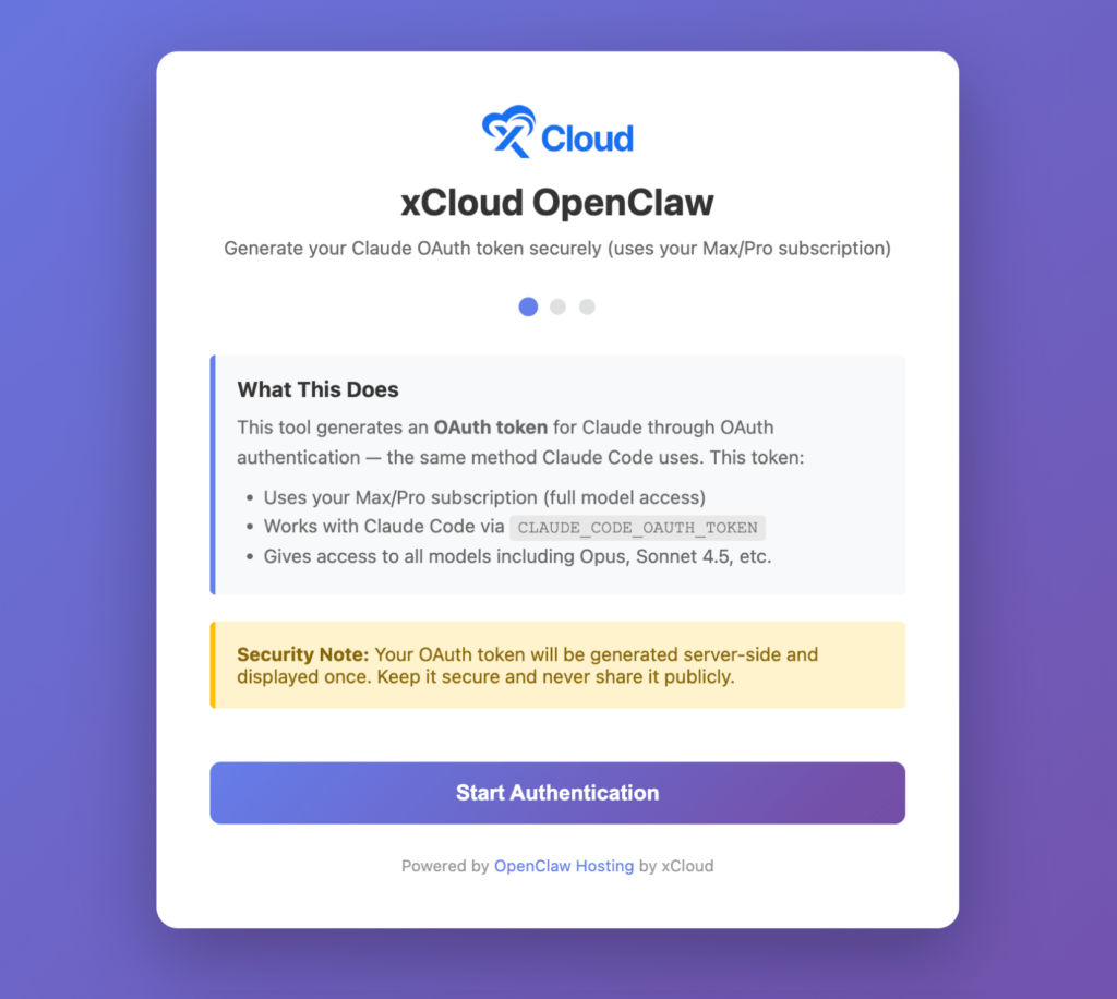 Then a screen will appear, and it will help to generate a Claude OAuth token using the same OAuth flow as Claude Code, and the process is absolutely fluent.