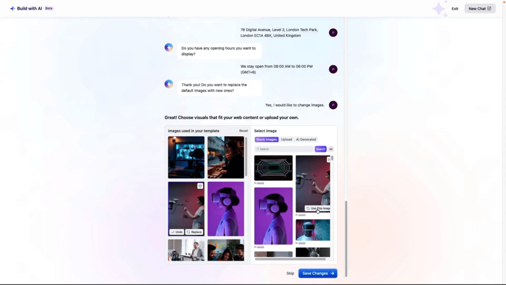 - If you want to replace the images from the template and want to add customized images, you can do that. With Templately AI, you can also replace images. To change images, click on the โYesโ button to agree to replace images.