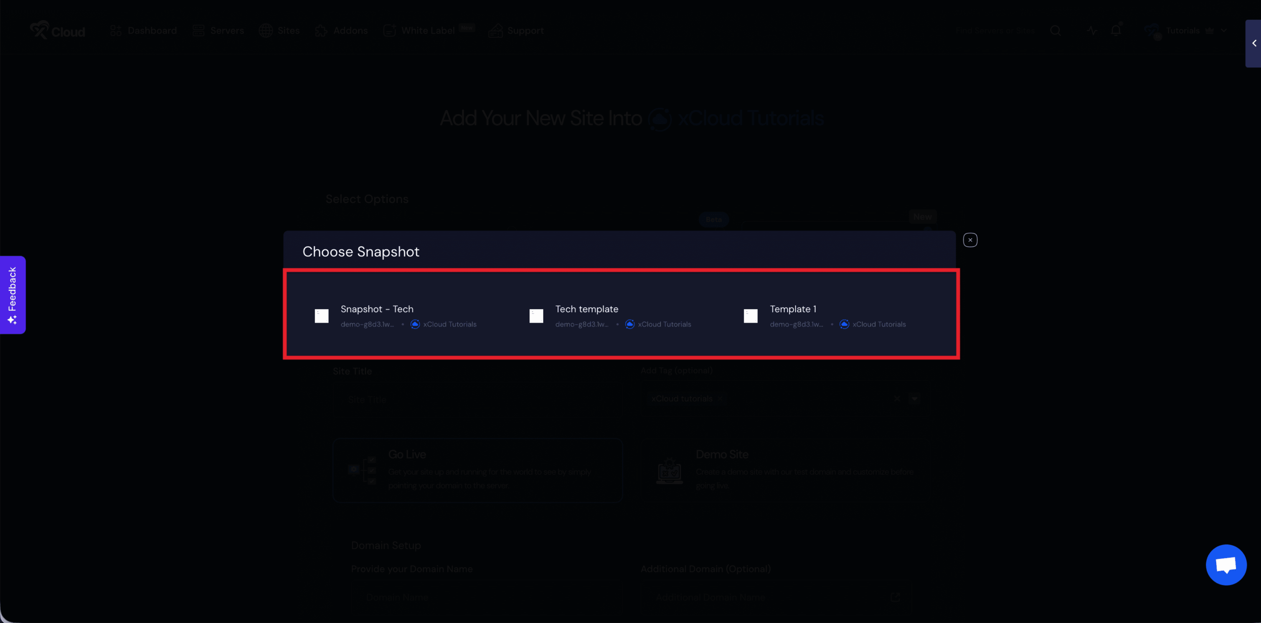 This ensures consistency across deployments, reduces manual effort, and speeds up the site creation process. Follow the steps to create a snapshot and use it to launch a new WordPress site in xCloud.