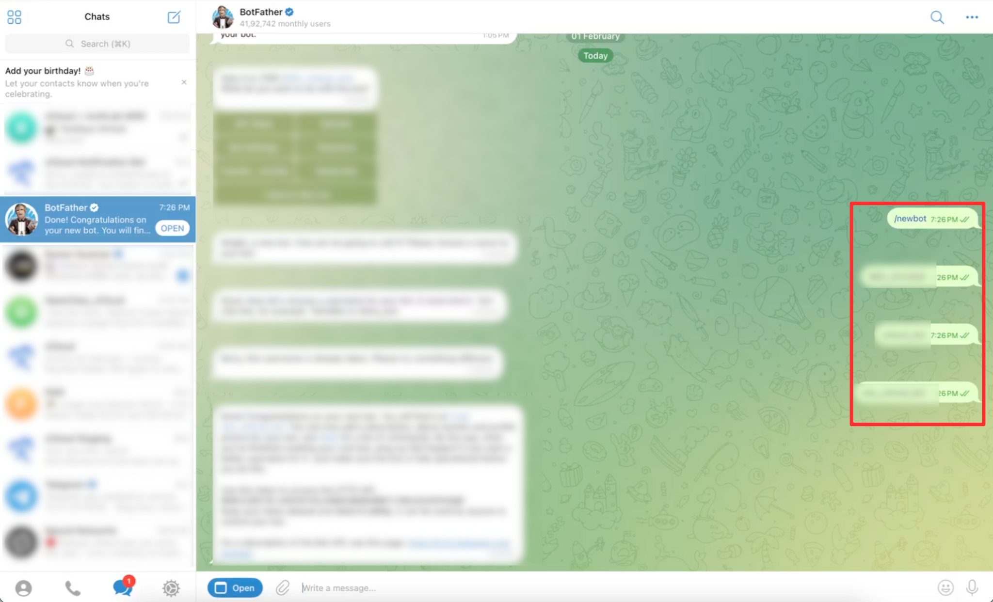 To chat with our bot, weโll use Telegram. Select the Telegram option and follow the following steps: Open Telegram. Search for @BotFather and start the chat.