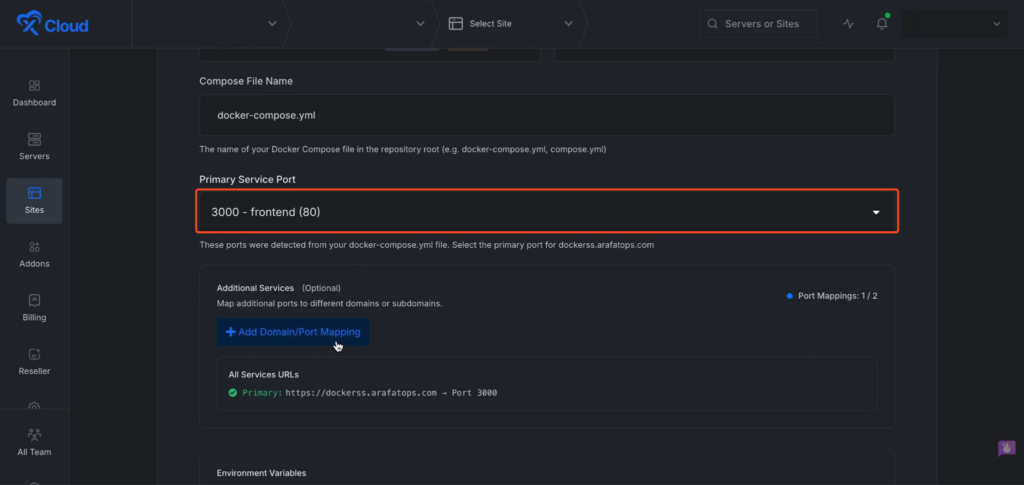 Next you will get few ports that detected from your docker file. You can select the โPrimary Service Portโ from the dropdown menu.