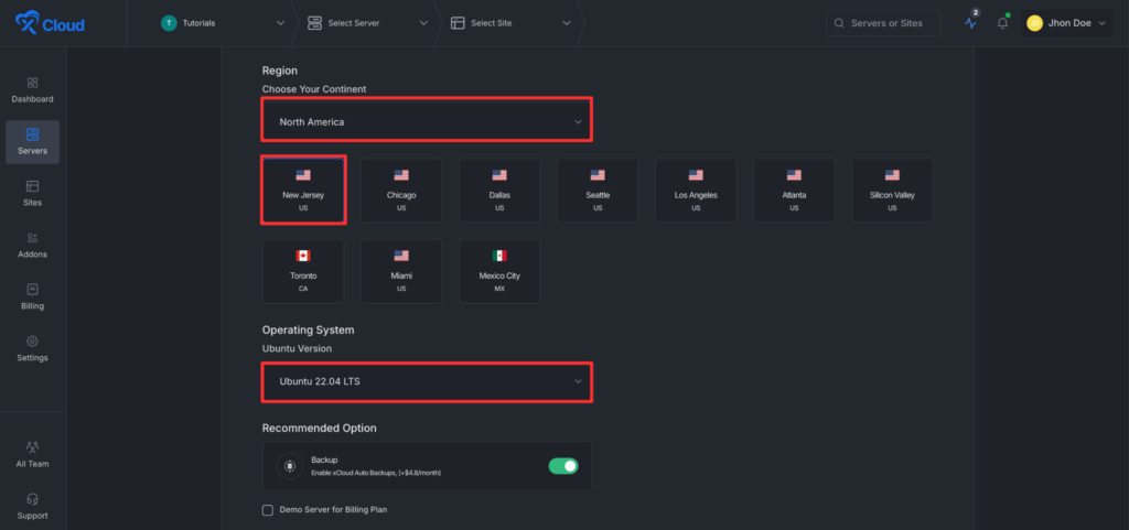Step 1: Create an xCloud Managed Server #