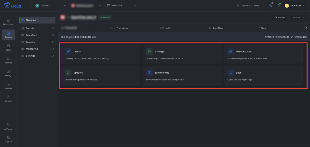 When deployed on xCloud, OpenClaw runs on a dedicated xCloud managed server with a preconfigured stack. This setup removes the complexity of self-hosting, manual configuration, updates, and infrastructure maintenance.