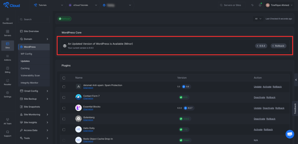 Steps To Manage And Update WordPress Core, Themes, and Plugins In xCloud #