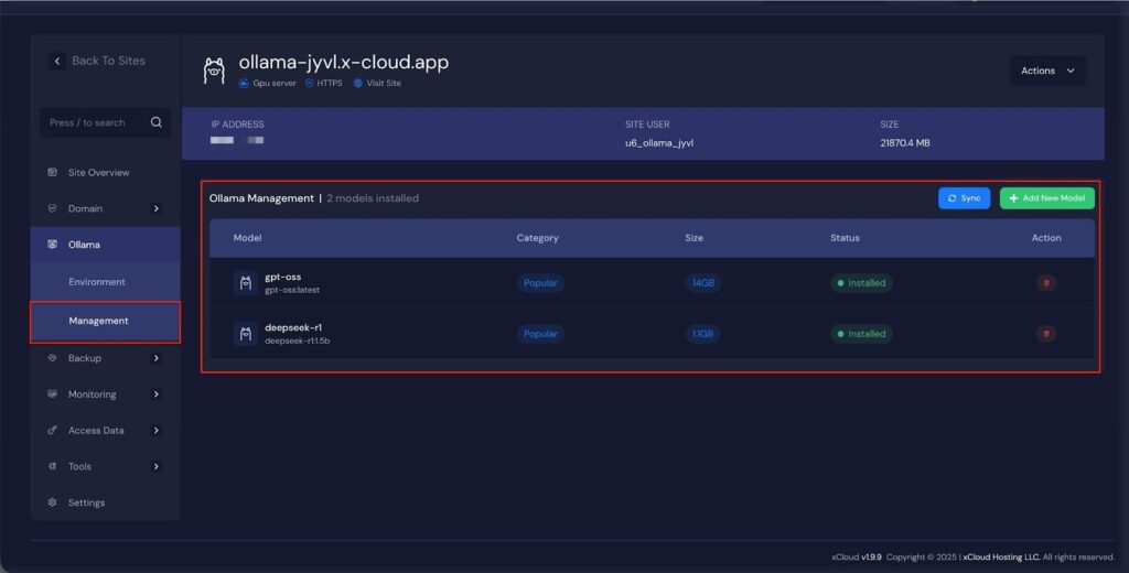By following the instructions for setting up Docker + NGINX servers, deploying Ollama, and configuring OpenWebUI, you can quickly get your AI models up and running on a cloud environment tailored to your needs. With xCloud’s One Click Apps, Environment Editor, and model management tools, maintaining and scaling your LLM deployments becomes straightforward and efficient
