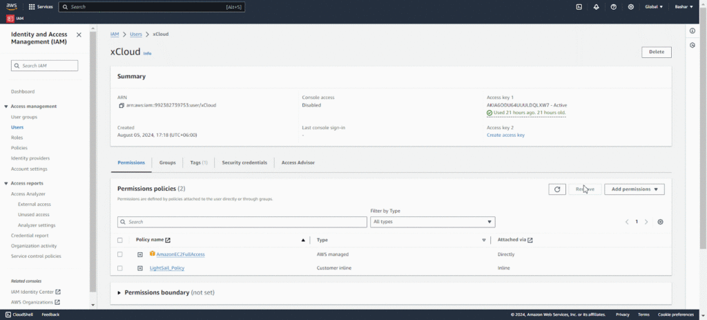 Step 9: Give Another permission for Amazon Lightsail #