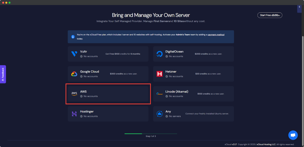 Step 1: Create Your AWS Server in xCloud #