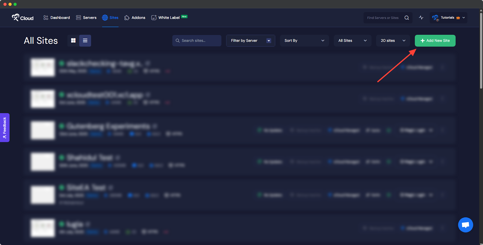 Begin by logging into your xCloud account. Once logged in, navigate to your dashboard and click on the โAdd New Siteโ button.