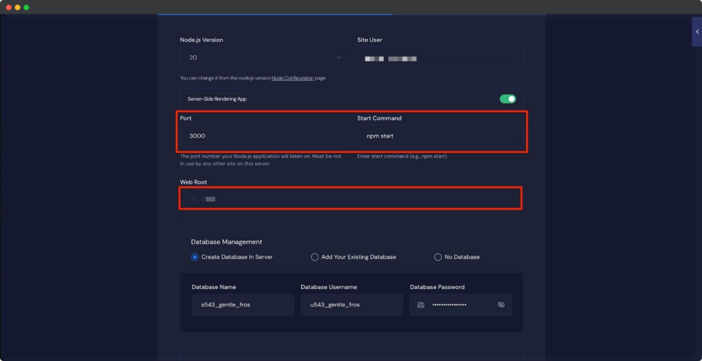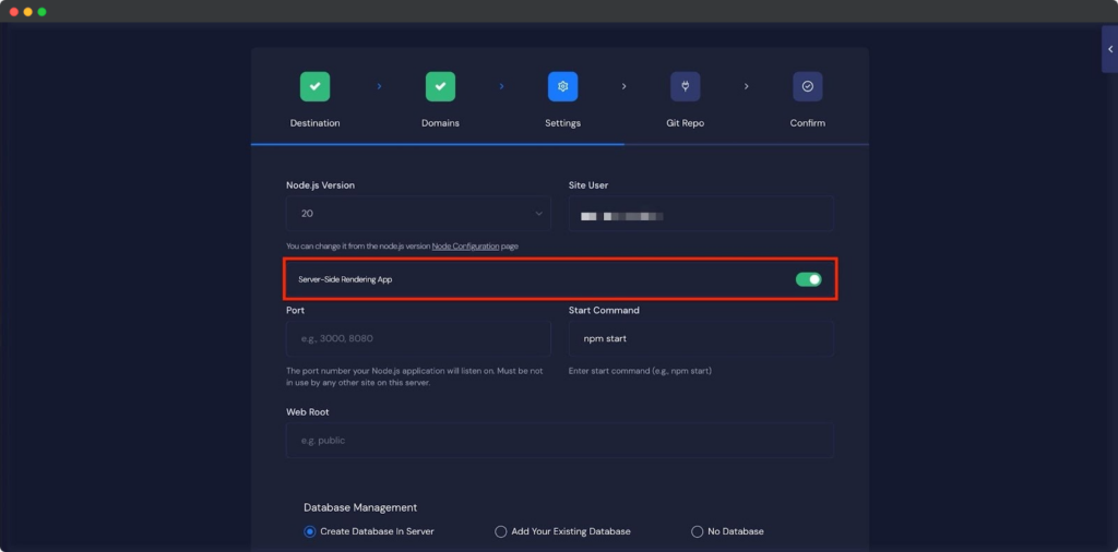 If your Node.js application (for example, Next.js or Nuxt.js) renders pages on the server before sending them to the client, toggle this option on. This allows xCloud to configure the environment to support SSR processes properly.