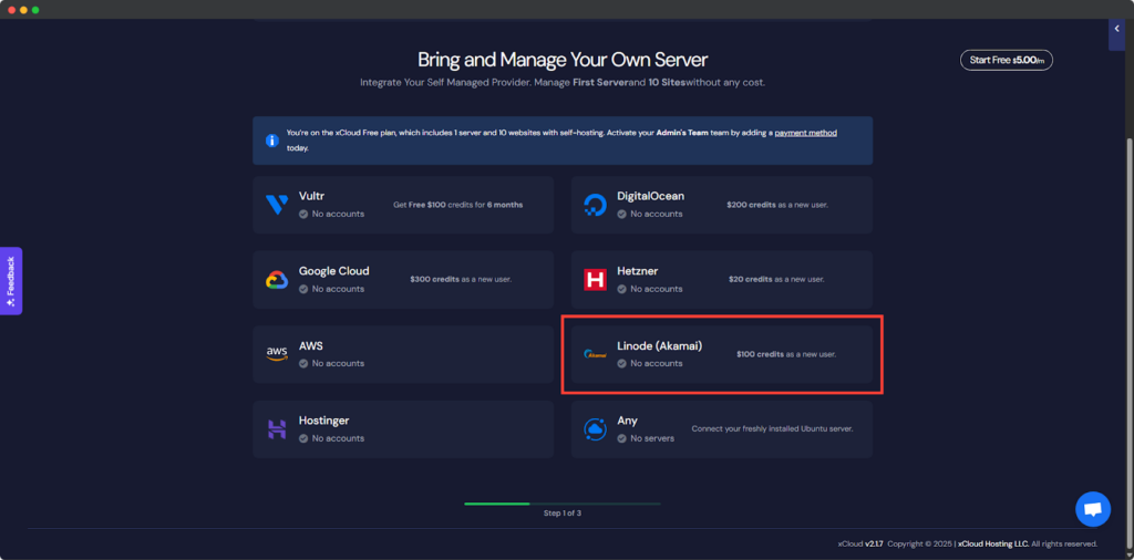 This guide shows how to set up the Linode server in xCloud. Follow the steps to quickly launch, configure and start your cloud journey.