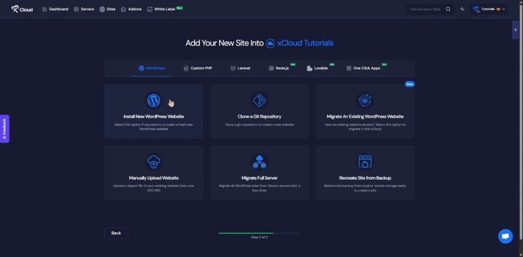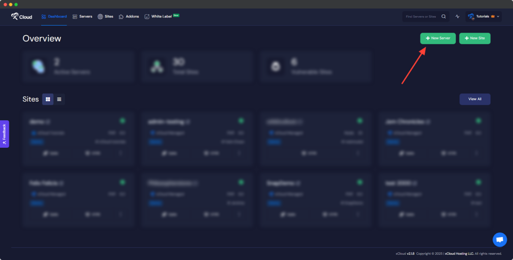 Begin by logging into your xCloud account. Once logged in, navigate to your dashboard and click on the โAdd New Siteโ button.