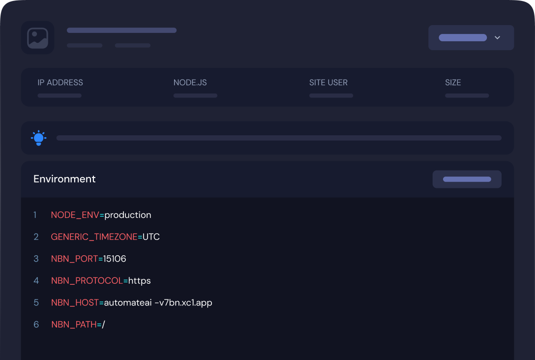 Set up your Node.js environment the way you want. Configure versions, settings, and more right from your dashboard.